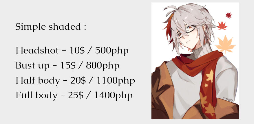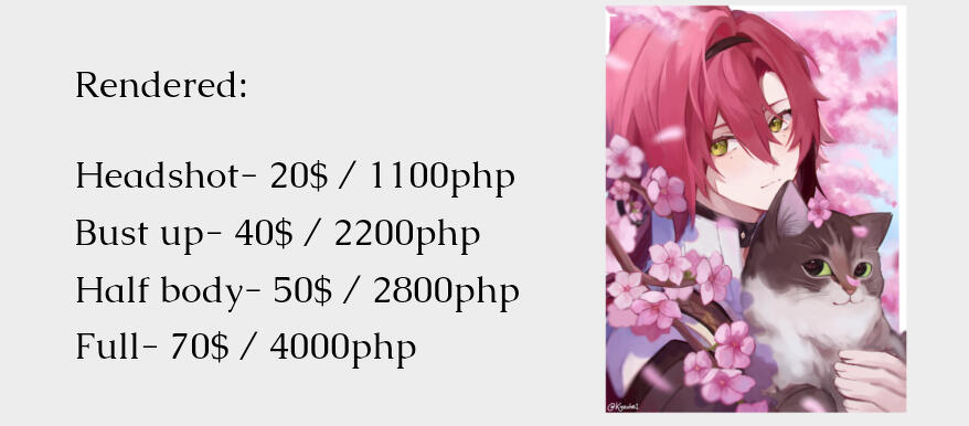 - Detailed Backgrounds – rages 10$ (500php) to 15$ (800php)(negotiable)